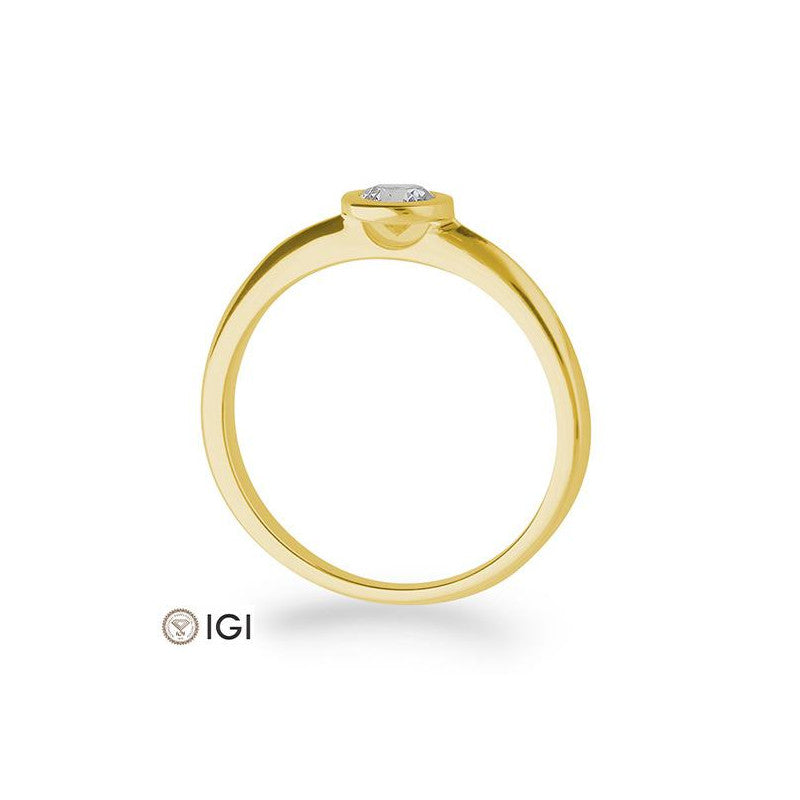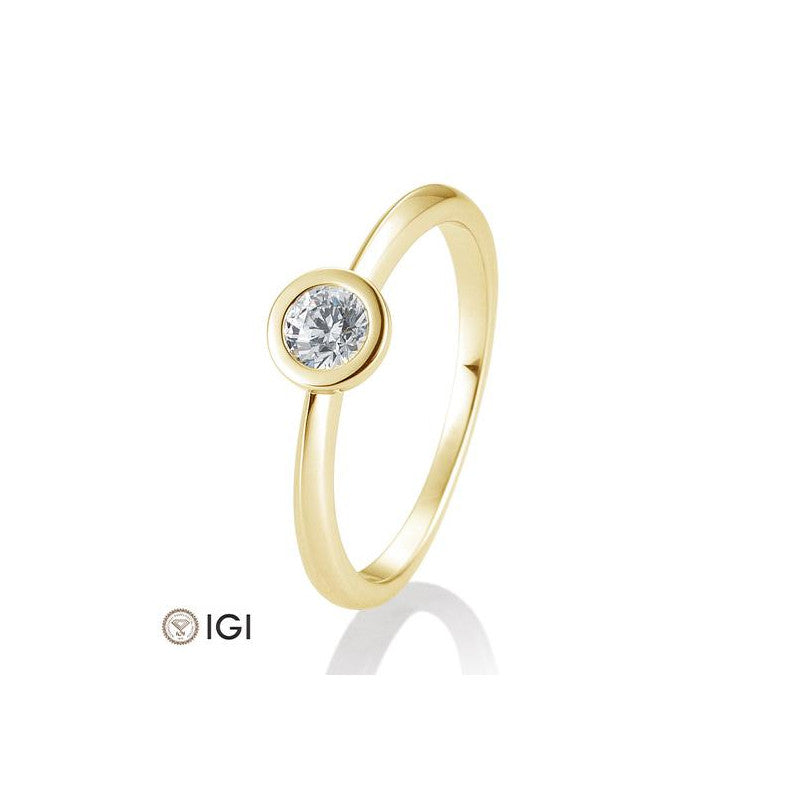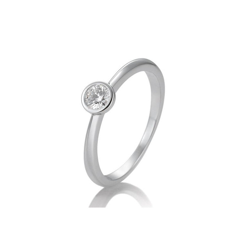 Der brillantgeschliffene Diamant im Zentrum des Rings fängt das Licht auf unvergleichliche Weise ein und verleiht dem Schmuckstück eine strahlende Brillanz. Seine klassische und minimalistische Form macht ihn zu einem vielseitigen Begleiter – perfekt für Verlobungen, Jubiläen oder als Zeichen tiefer Zuneigung.