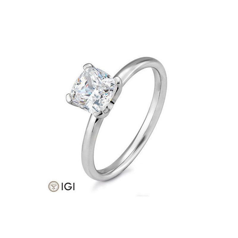Dank der exzellenten Schliffqualität (G/vs LG) entfaltet der Stein sein volles Feuer – ein Symbol für Klarheit, Liebe und Beständigkeit. Der Ring ist in verschiedenen hochwertigen Goldlegierungen erhältlich: Weissgold, Gelbgold, Rotgold, Rosegold sowie Platin – ganz nach Ihrem persönlichen Stil.