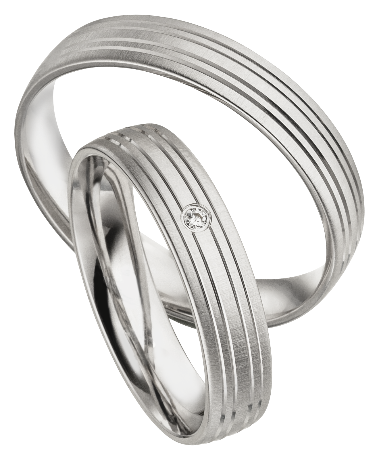 Mit einer Breite von 4,50 mm und einer Höhe von 1,30 mm bieten diese Ringe angenehmen Tragekomfort für den Alltag. Ein fein geschliffener W/si-Diamant von 0.0135 ct. setzt einen dezenten, aber stilvollen Akzent.