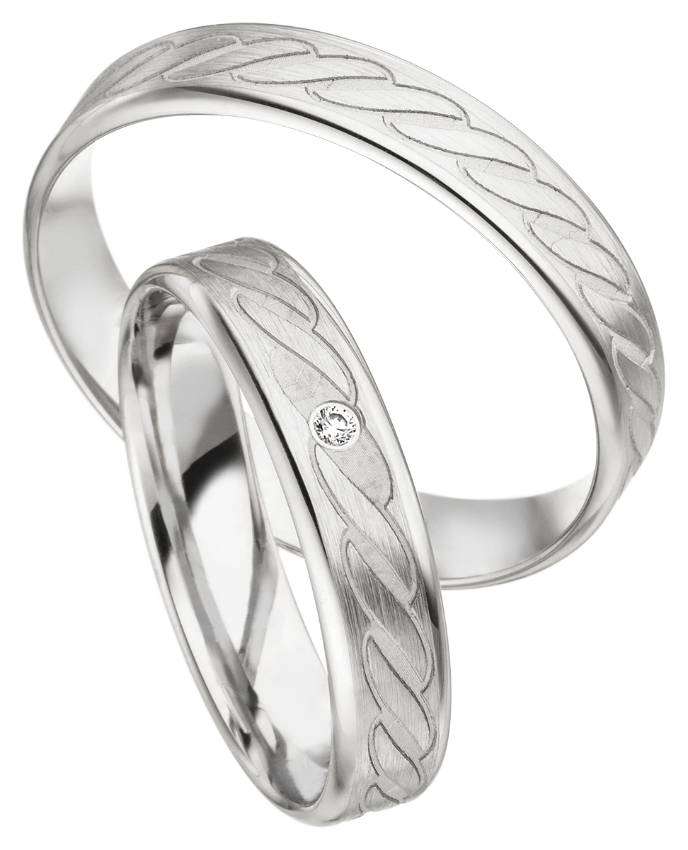 Ein funkelnder Diamant (W/si, 0.0135 ct.) setzt einen dezenten Akzent und verleiht den Ringen eine besondere Raffinesse. Mit einer Breite von 4,50 mm und einer Höhe von 1,15 mm bieten sie sowohl Eleganz als auch Tragekomfort.