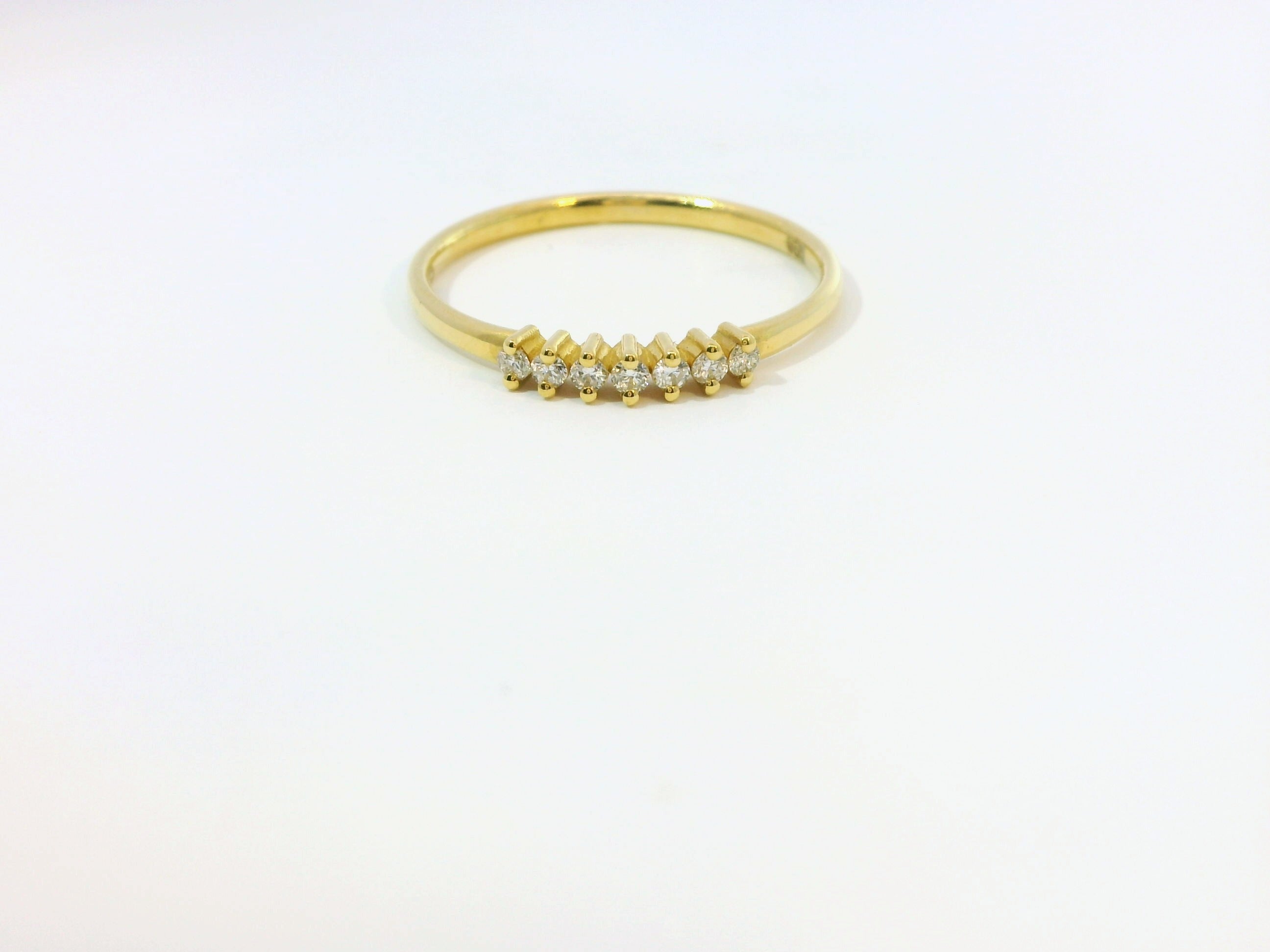 Entdecken Sie den exquisiten Linden Verlobungsring, gefertigt aus 18 Karat Gelbgold. Dieser elegante Ring besticht durch seine zeitlose Schönheit und außergewöhnliche Qualität. Der Ring ist mit sieben funkelnden Diamanten besetzt, die insgesamt 0.11 Karat wiegen. Die Diamanten sind in den Farbtönen F-G und der Reinheit SI gehalten, was ihnen einen brillanten Glanz und eine erstklassige Qualität verleiht.